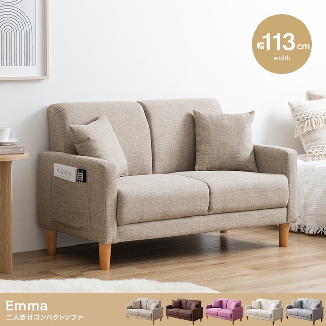 Emma 2人掛けコンパクトソファは、シンプルでスタイリッシュなデザインが魅力のソファです。コンパクトなサイズながら座り心地は◎。忙しい現代人の生活スタイルにぴったりの一脚です。 座面のクッションが柔らかく、背もたれも程よい高さで身体を優しく支えます。長時間座っていても疲れにくく、リラックスタイムを充実させることができます。また、コンパクトなサイズなので、リビングルームや書斎など、さまざまな場所に置くことができます。 ソファの表面は、スエード調のフェイクレザー素材を使用しており、高級感があります。クリーニングも簡単で、汚れやシミがつきにくいのもポイントです。お手入れが簡単なので、いつでも清潔な状態を保てます。 おしゃれで機能的なEmma 2人掛けコンパクトソファは、忙しい日常を過ごすあなたにぴったりのアイテムです。是非、ご自宅にお迎えして、心地よいくつろぎの空間を演出してください。 サイズ・容量 幅113cm×奥行62cm×高さ68cm×座面高36cm 規格 本体:木製フレーム、Sバネ、ウレタン、ファブリック 脚部:天然木 注意事項 ▼誠に恐れ入りますが北海道・沖縄・離島エリアへの配送は行っておりません。 ご注文を頂きましても、お受けできかねますので予めご了承のほどお願い申し上げます。 商品管理番号:135002