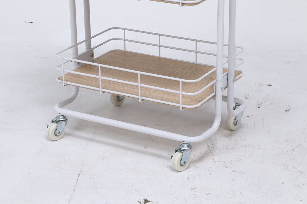 重さのある野菜や油なども収納可能です。バスケットの底に厚さ9mmの木板を使用。木目があることでお部屋に温かみを演出してくれます。フレームは丈夫なスチール素材。S字フックもかけられる形状なので、収納の幅も広がります。キッチンワゴンとしてはもちろん、バス用品を収納したり、観葉植物を飾ったり、用途はさまざま!キッチン回りに、ダイニングテーブルの横に、使いたい場所に手軽に移動できます。【耐荷重目安】バスケット5kg/木板には合成樹脂化粧繊維板(メラミン樹脂)を使用しています。