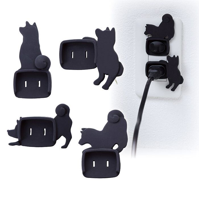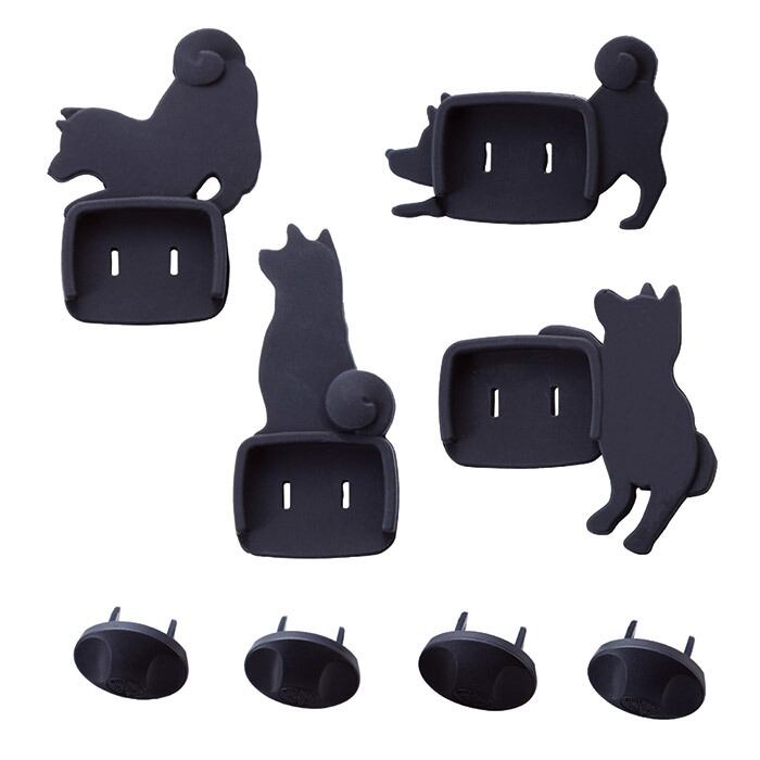 イヌをモチーフしたリビンググッズが多い中、最近の火災原因の一つとして問題になっているトラッキング火災を防止するカバーとして新開発されました。トラッキング火災とは、コンセントにプラグを差し込んだままにしたところにホコリが溜まり、電流が流れて発電・発火することです。これを防止するために、コンセントとプラグの隙間をカバーすることで防止が可能です。「いぬのコンセントカバー」は、愛くるしいイヌたちを配置することで癒しも取り入れたニューデザインで、大学生のアイデアで誕生したことでも話題になり、現代の若者の高いセンスが「癒し」と「安心」を共存させてます。イヌはそれぞれ4種類とも違うポーズで、使用していないコンセントには付属のコンセントキャップでさらにカバーできます。