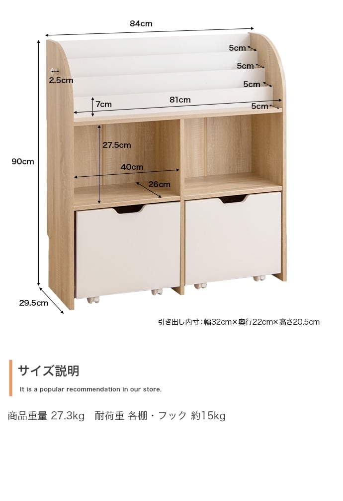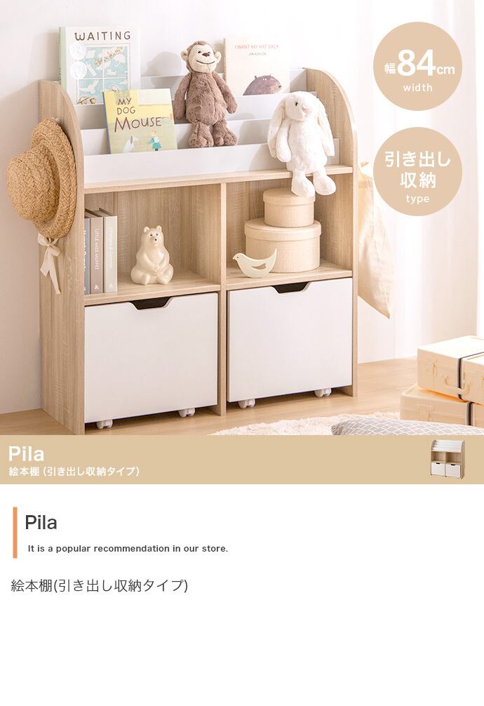 【幅84cm】Pila 絵本棚(引き出し収納タイプ)