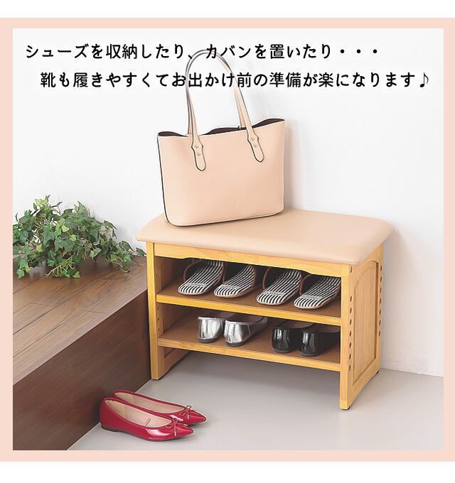 木製収納付き玄関ベンチ90cm幅(ガタ付き防止付き)