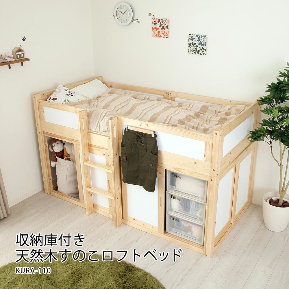 ぼくの・わたしの専用秘密基地。天然木収納庫付すのこロフトベッド