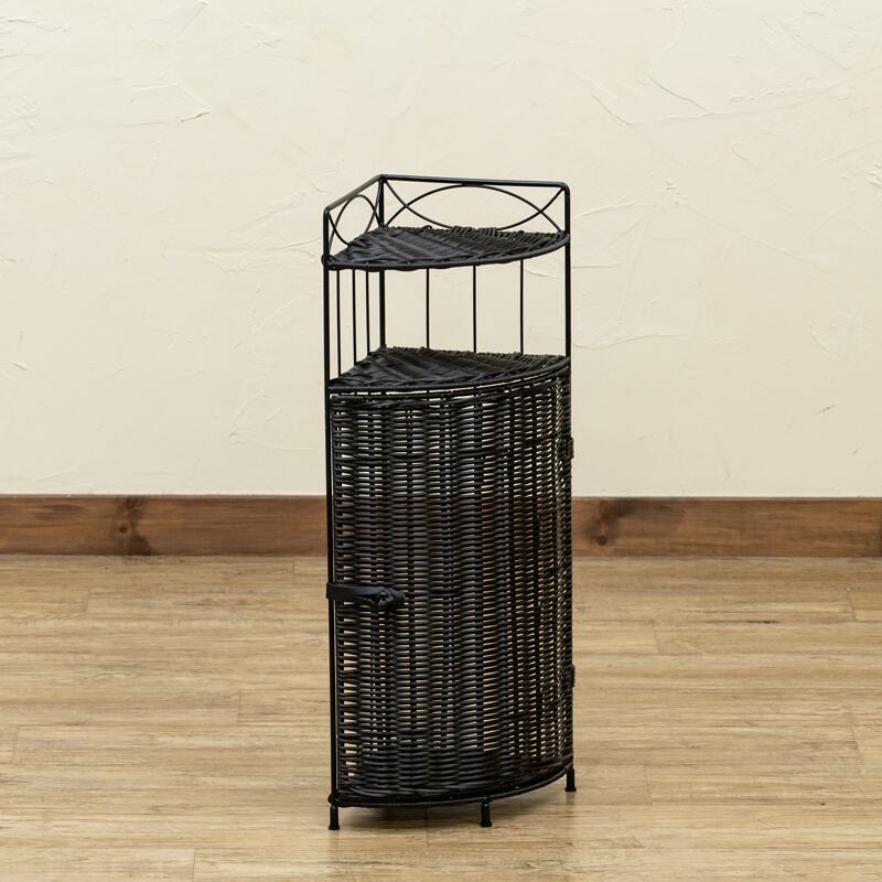 モダンでナチュラルな雰囲気を演出するラタン調のコーナーラック。2段の収納スペースは、キッチンやリビングなどの各部屋で使いやすく、使い勝手も抜群です。組み立て式で、設置も簡単。ディスプレイや収納におすすめのアイテムです。