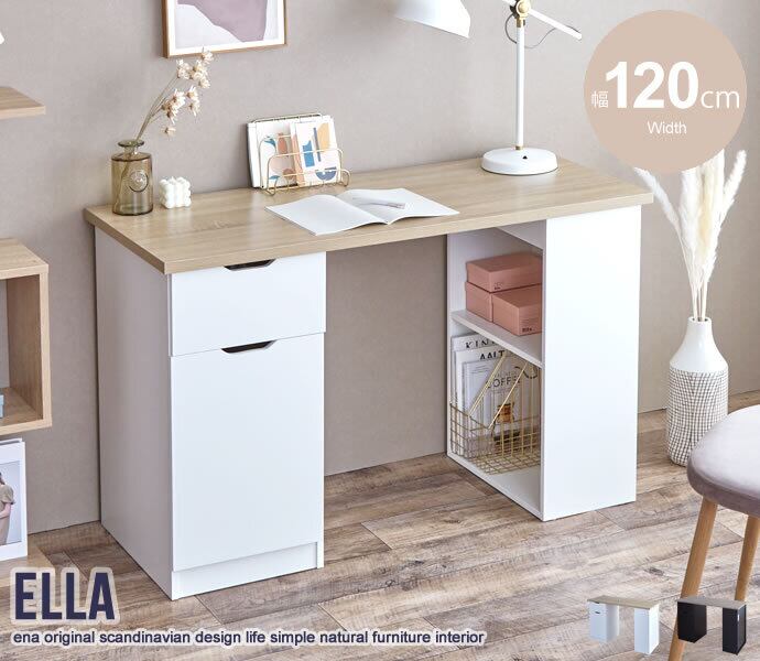 自宅で仕事や勉強をする方にぴったりなElla収納付きデスクです。幅広の天板があり、パソコンや書類を広々と置くことができます。また、引き出しや棚もついているので、必要な文具や資料をすっきりと収納することができます。デザインもシンプルでありながら、木目調の素材がお部屋に温かみを与えます。