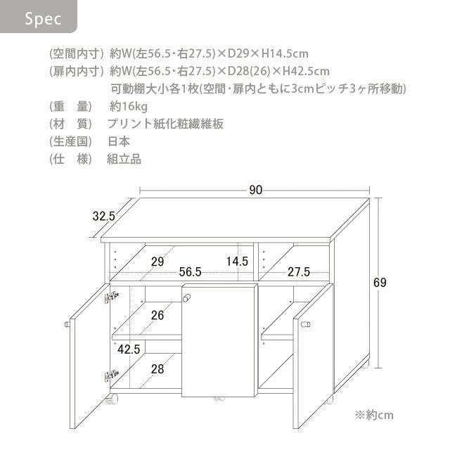 【商品サイズ】約 横90×奥行32.5×高さ69cm