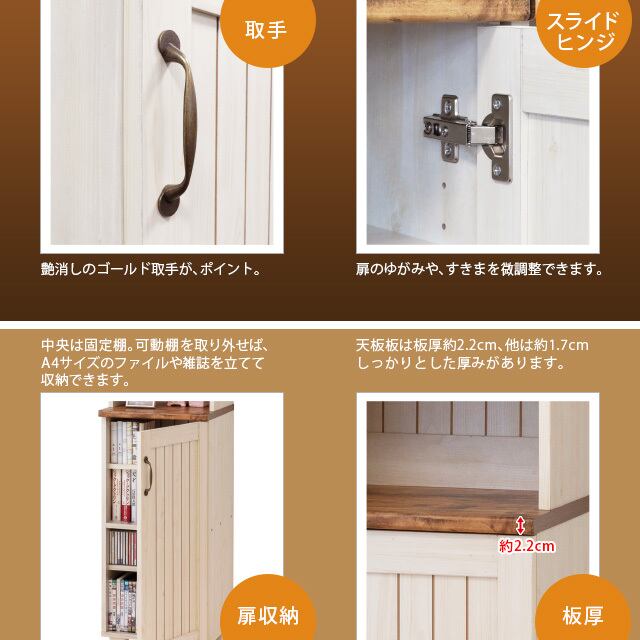 ◆天板はかわいい木目調プリント、本体は白木目柄のカントリースタイルです。