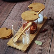 キッチン収納 竹木蓋 3点セット。シンプルなデザインでありながら、上質な素材と機能性を兼ね備えたアイテムです。竹の木蓋が自然な温かみを与え、キッチンをより一層オーガニックな雰囲気に演出します。